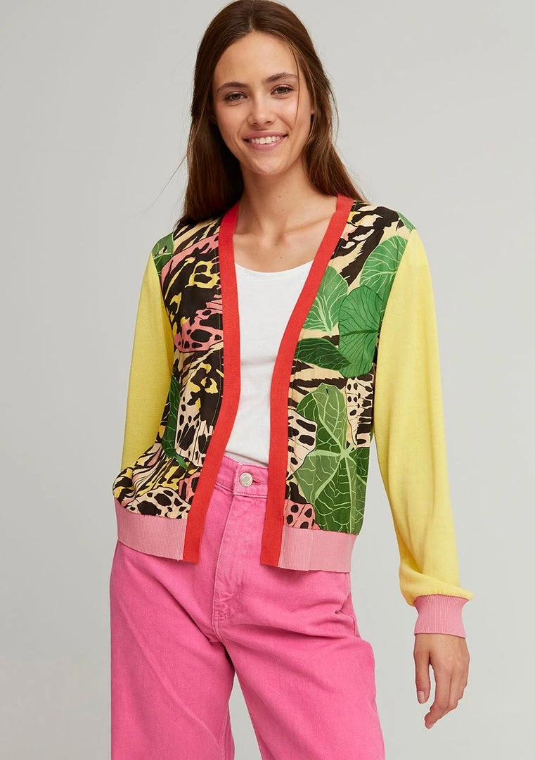 Just because it’s getting warmer outside doesn’t mean you have to give up your sweaters. We like to wear this slightly shorter cardigan as a top when the weather gets warmer. Added bonus: The beautiful botanical design and the contrasting collar and cuffs.