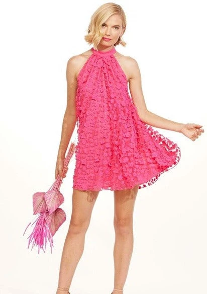 Let the festivities begin! With a swing silhouette, halter neck and plenty of pink petals, this detailed dress is a welcome fit for elegant partygoers.