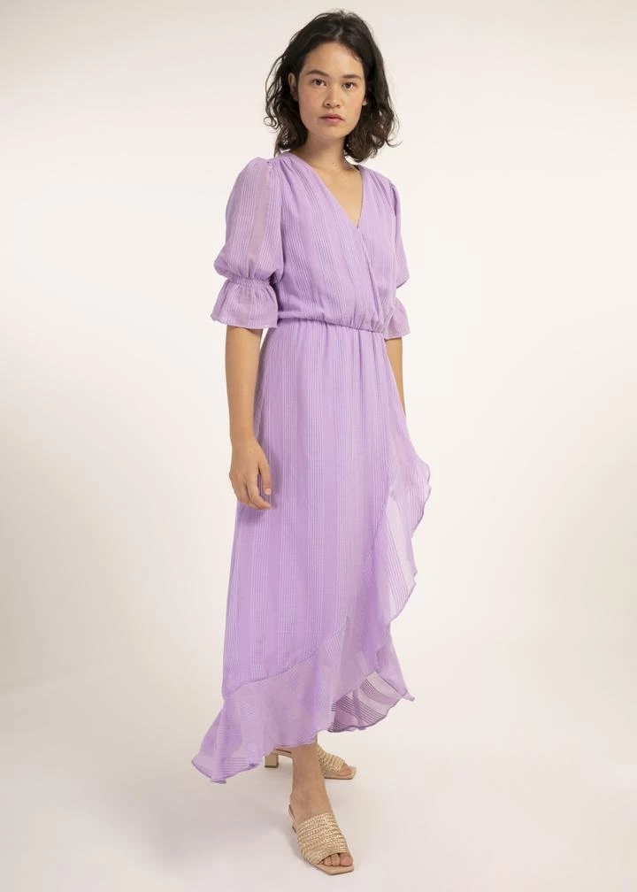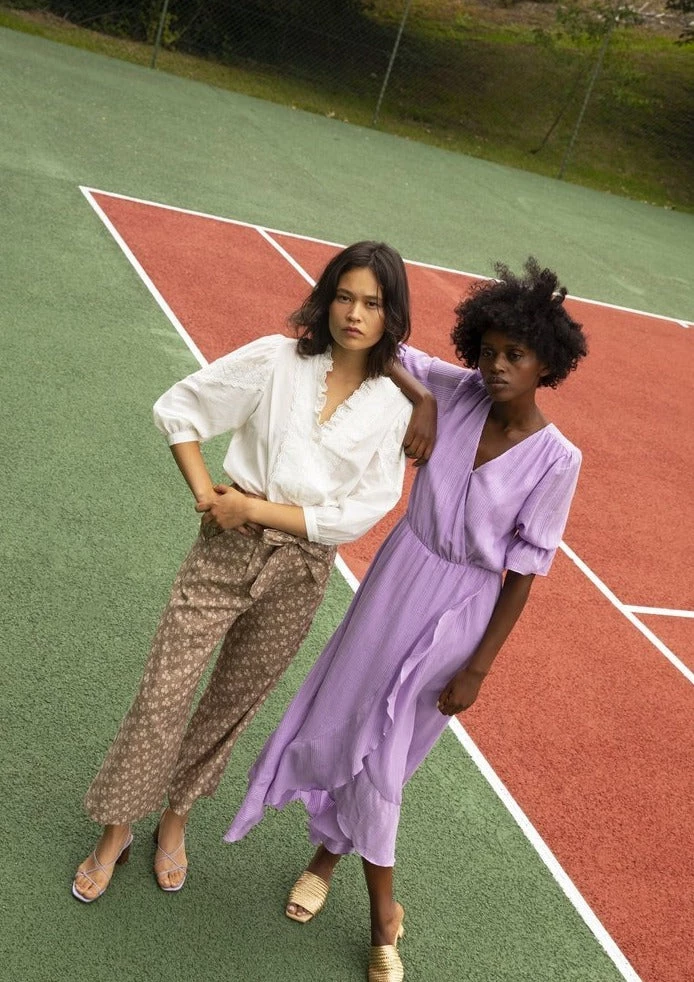 Delicate, the Armanda dress is an eye-catcher. This long dress is made of ultra-light pure cotton which accompanies with fluidity the movement. We note the details that complete its irresistible look: a delicate V-shaped neckline, puffed sleeves and an asymmetrical cut accompanied by a swirling ruffle. Wear it with flat sandals or heel sandals depending on your mood.