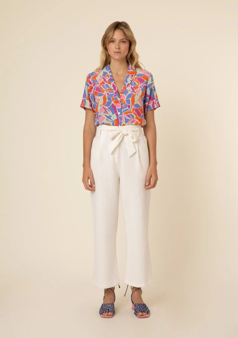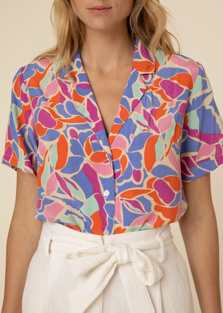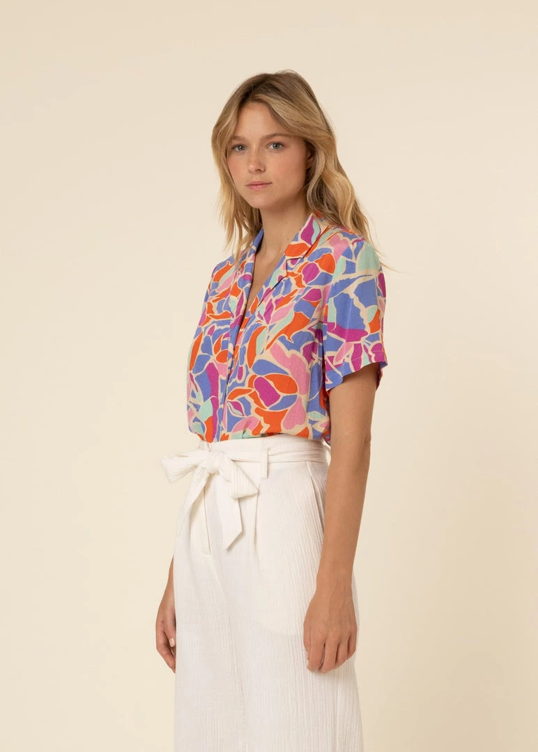 - Short sleeve shirt in viscose fabric with a retro inspired cut.