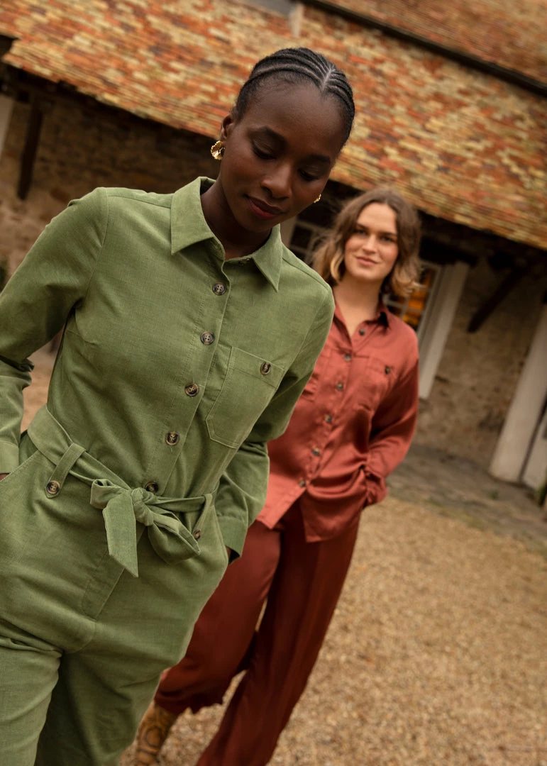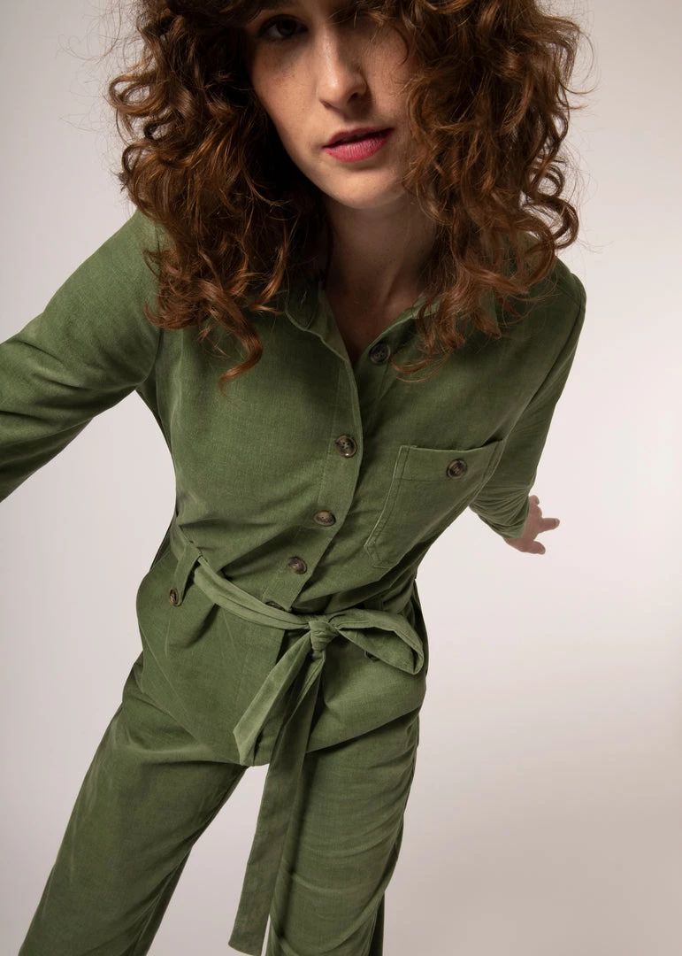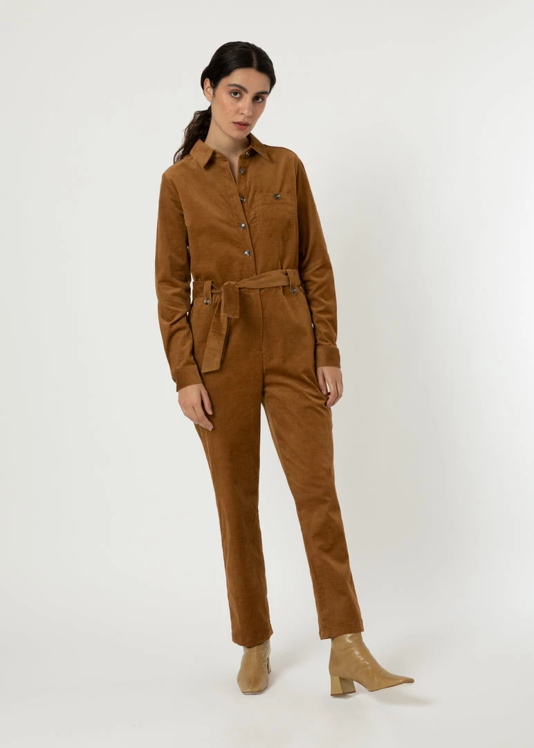 Our newest one-piece wonder, this workwear-inspired coverall is made from a beautiful cotton blend. It features a brushed cord finish.