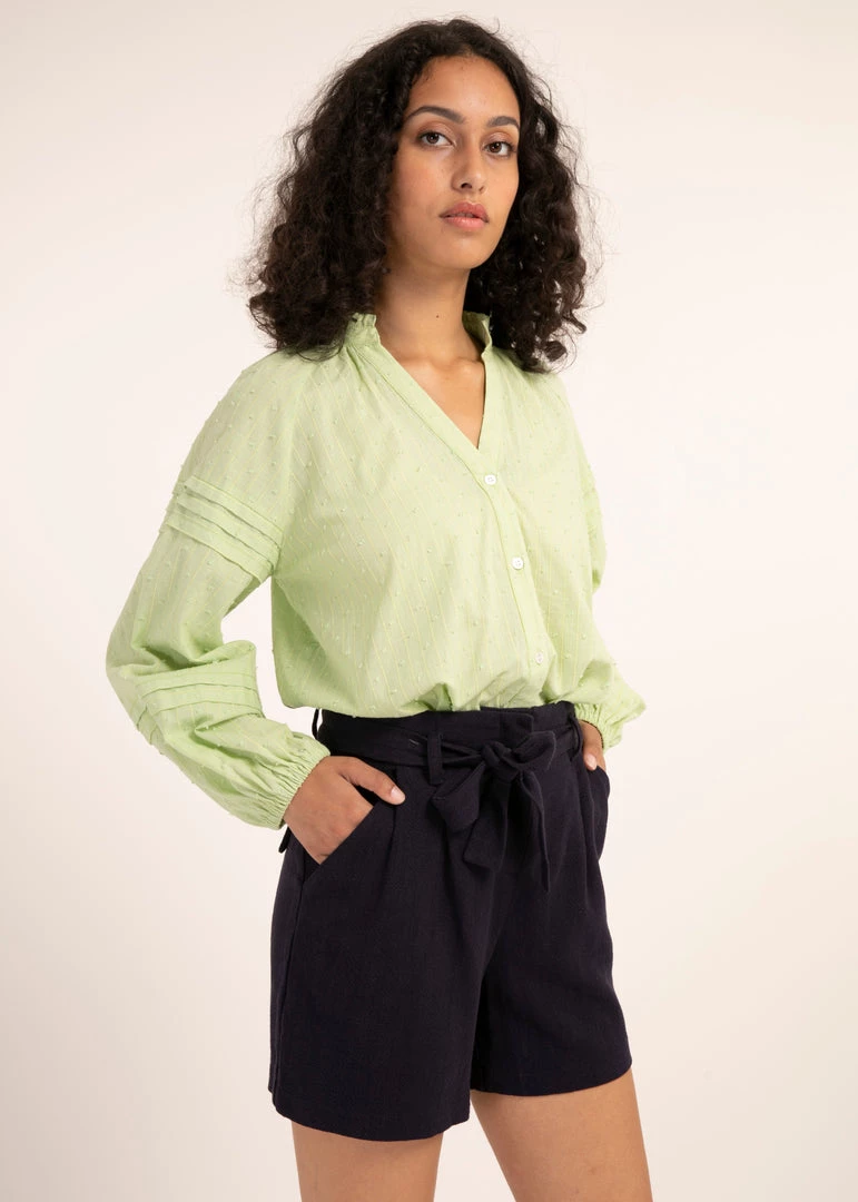 The Doreen shorts have become a timeless fashion item, making them an essential part of the summer wardrobe. Available in a light linen version, it offers a sleek design with refined details: a high waist belt accompanied by pleats at the front and wide pockets. Pair it with sneakers or sandals for a chic look.