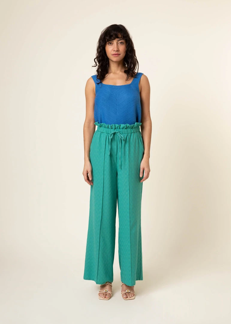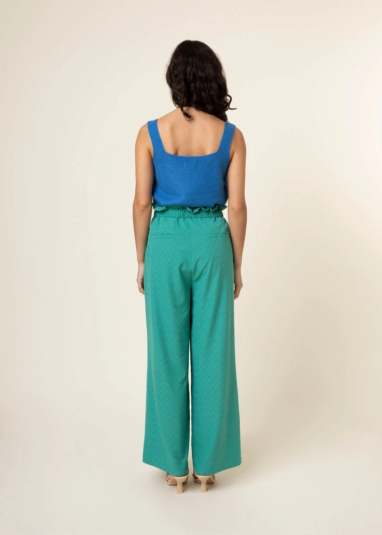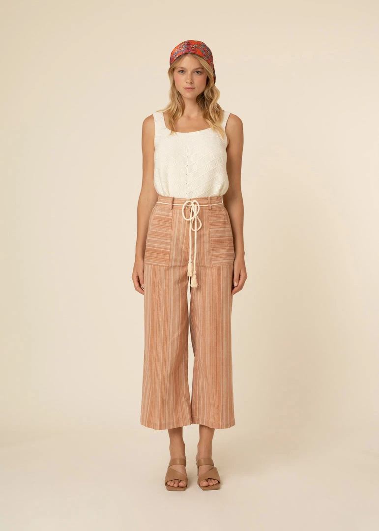 The Laila Ribbed Sweater Tank pairs well with the Palas Cropped Wide Leg Denim Jeans.