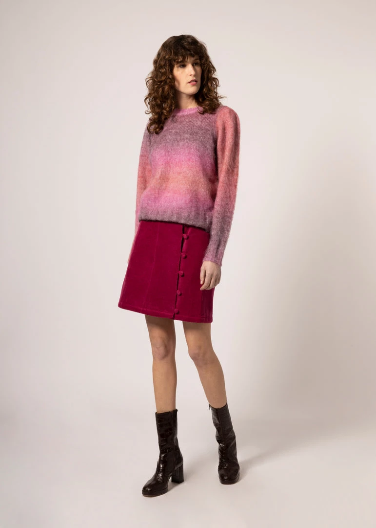 Drielly is 1m80 tall and wears a size S. For a size S, the length of the sweater is 57 cm, the shoulder width is 34 cm and the chest size is 50 cm.