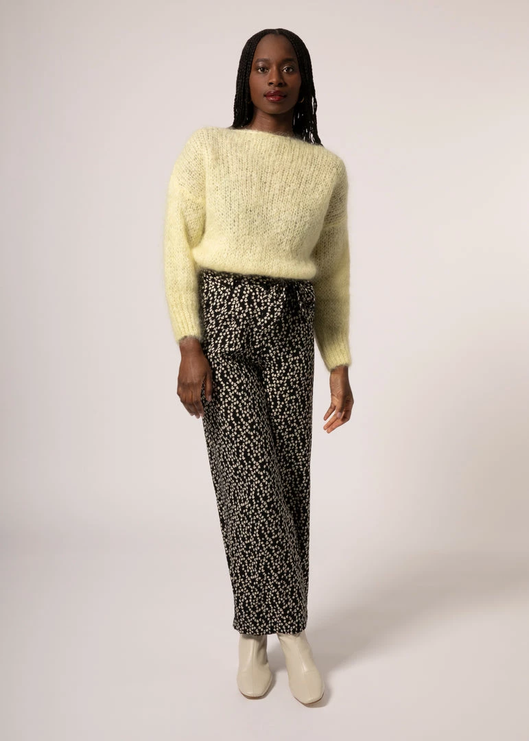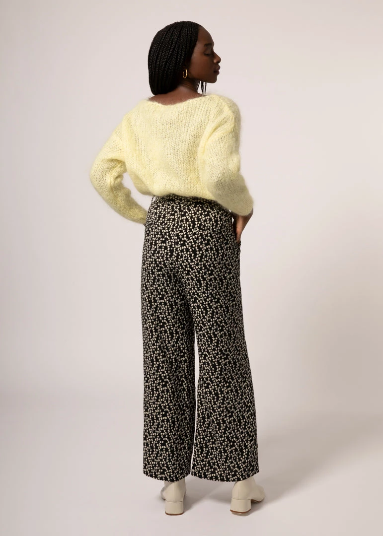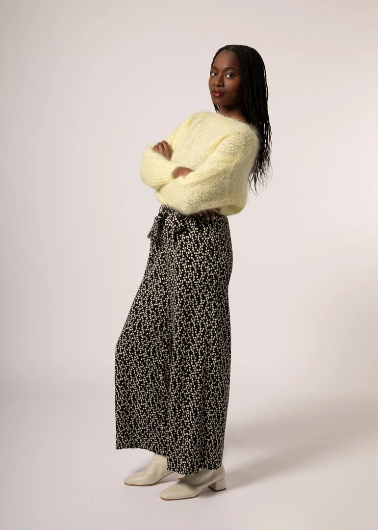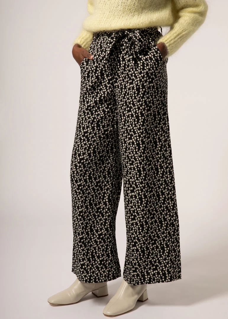 - Wide leg pants with floral print.