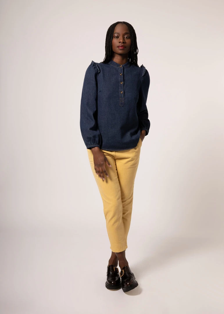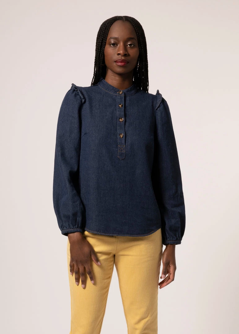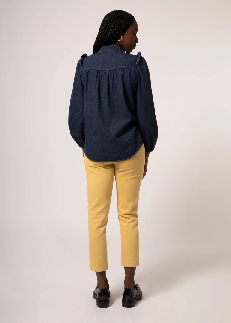 We like to think of the Cabris top as the ultimate “everyday” shirt. Every bit as perfect as an under-blazer layer as it is with jeans, this fit has a little extra room and a just-right length. And it’s the details that make this shirt truly special—like the mandarin collar, subtle ruffle detail on the shoulders, and beautifully finished seams from the inside out.