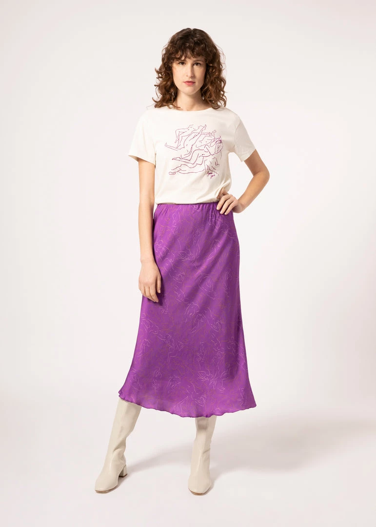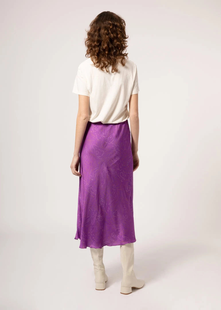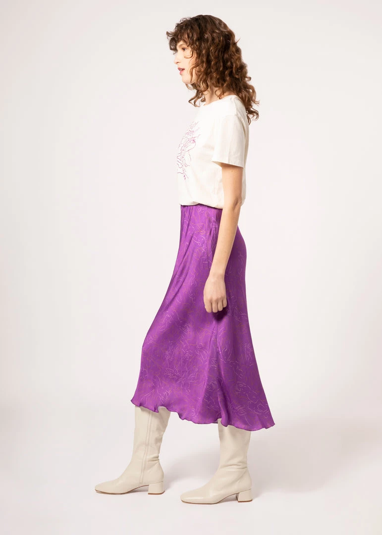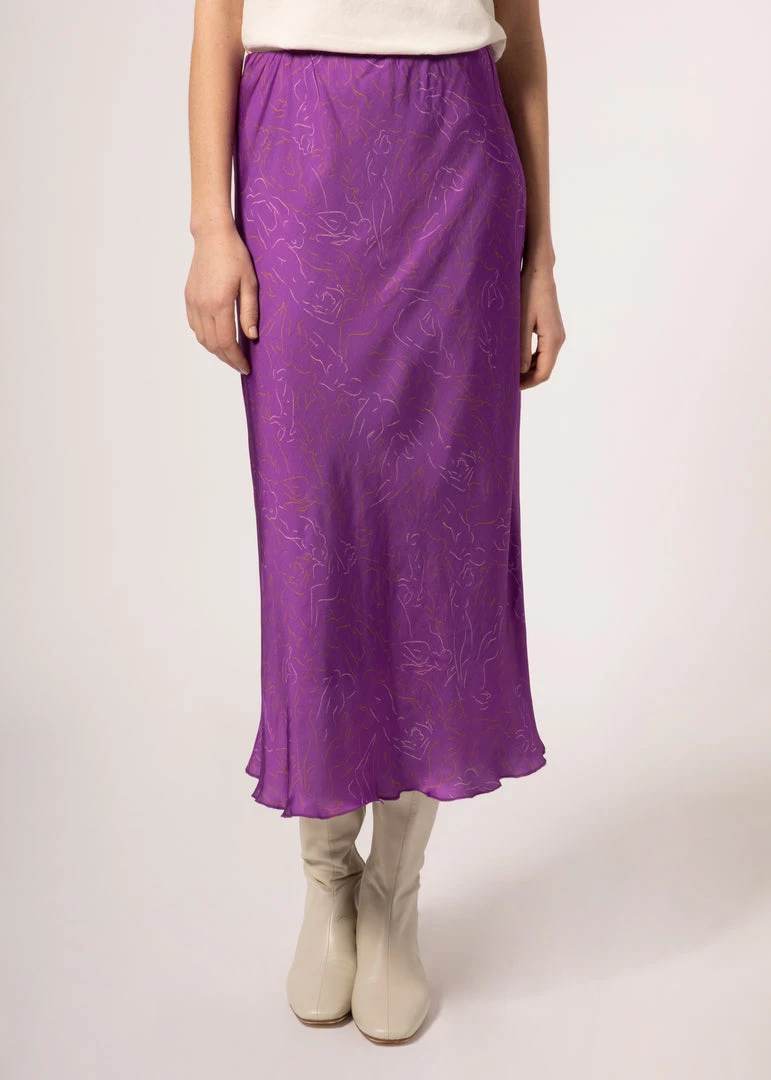 - Satin long skirt, bias cut and elastic waistband