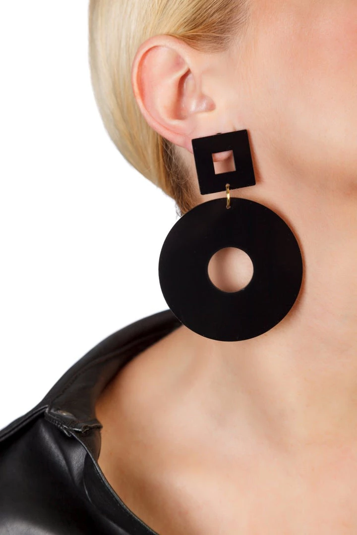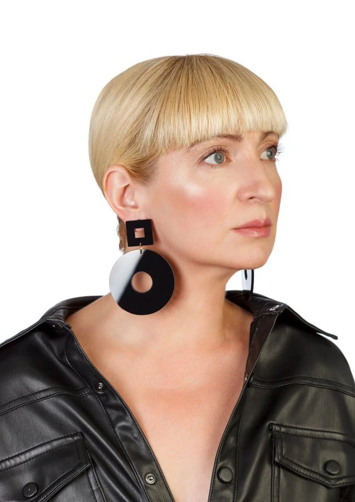 Not your classic hoops…in the best way. These chunky hoops made of plexi-glass feel fresh and modern, show them off with a turtleneck-and-ponytail combo.