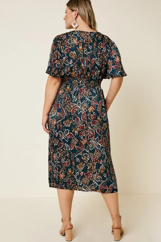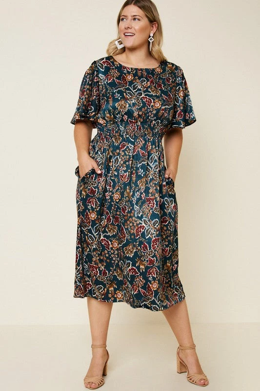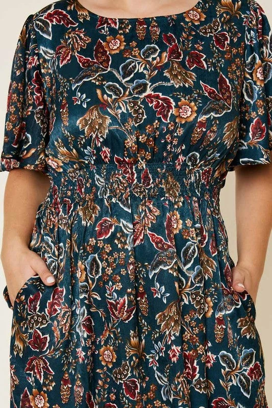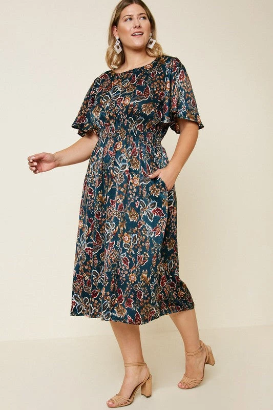How to get dressed in 30 seconds or less (for the holidays!)…This smocked floral satin dress is the answer—and it’s as flattering as it is polished too.