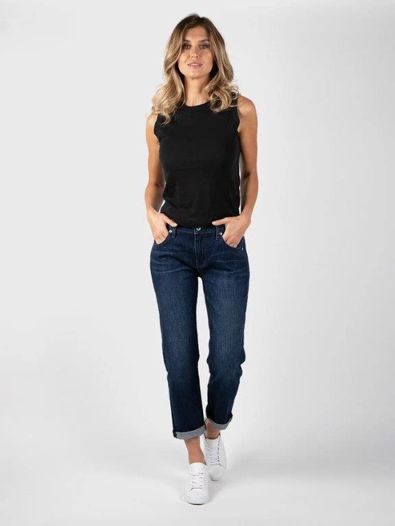 The new Modern/Aged fabric will instantly feel like your favorite pair of worn in jeans. Authentic vintage washes and touched with just enough stretch to feel super comfy. Model is 5’9″ wearing a size 26.