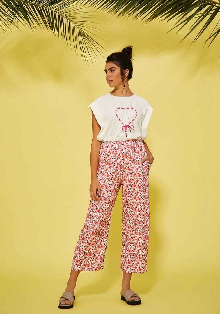 Our sweet take on the straight leg, these pants feature a relaxed fit, flattering floral design and a removable bow-tie belt. For a summer-friendly finish.