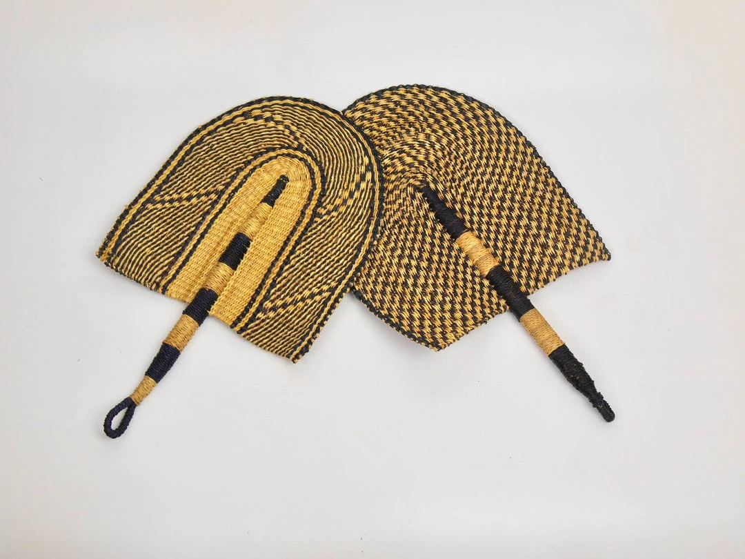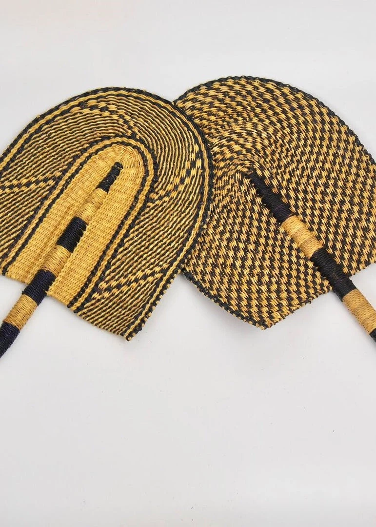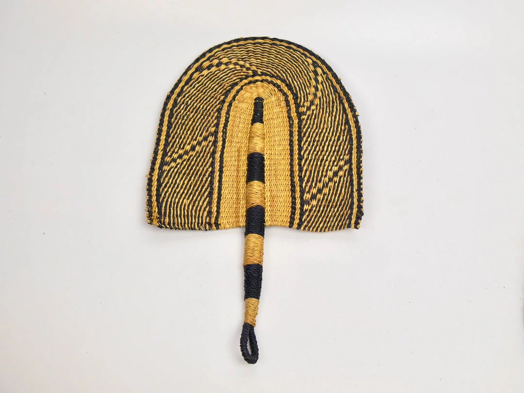 The fan is made of natural veta vera (elephant) grass straw. Colours may fade in contact with direct sunlight. Caution: this product may splinter.