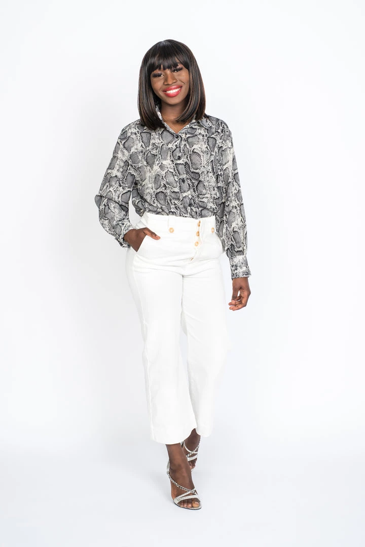 This classic chiffon blouse gets a fun upgrade thanks to a fierce snakeskin print which makes this easy wear-to-work blouse feel extra special.