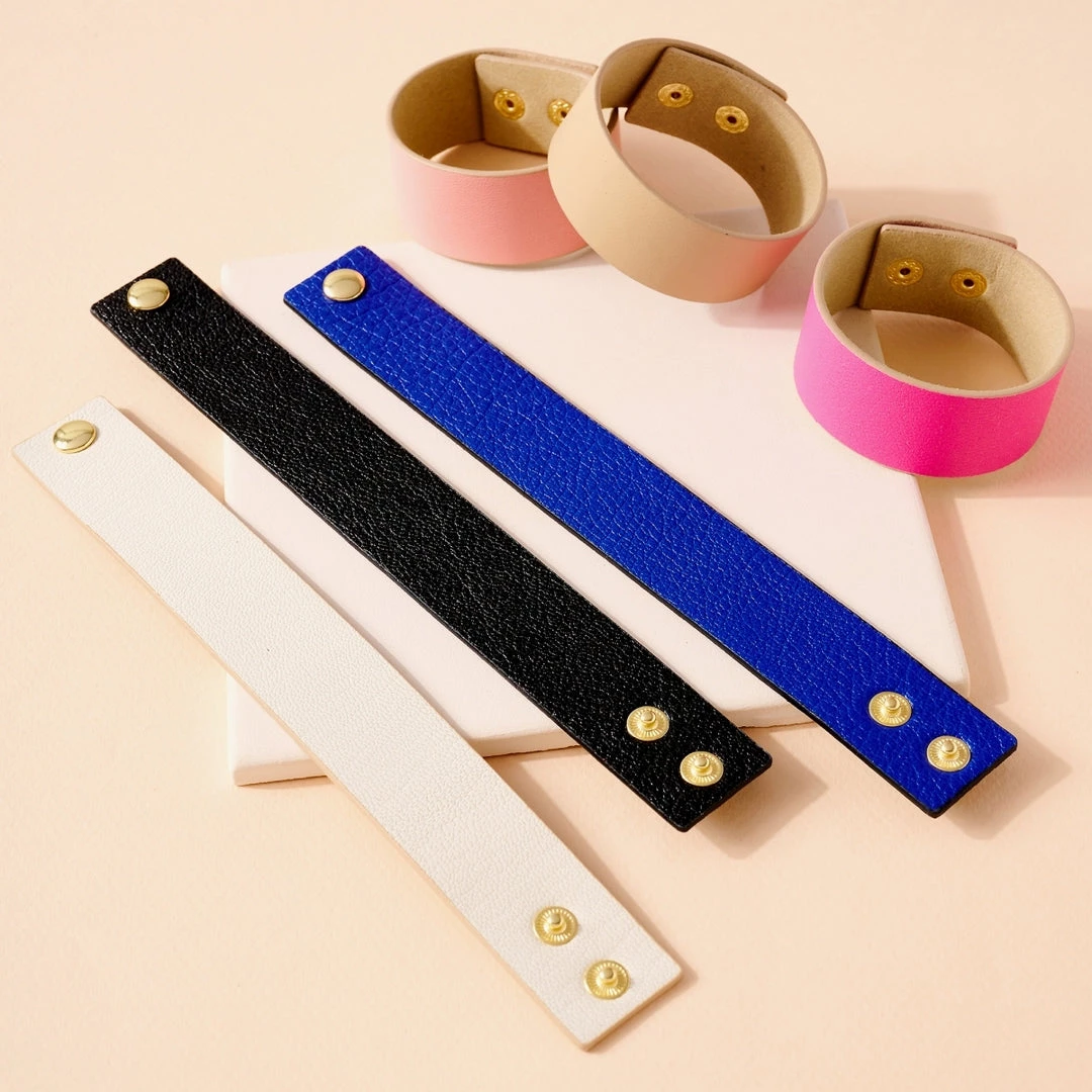 Add a little polish to your wrist with one (or several) of these beautiful leather clap cuffs.