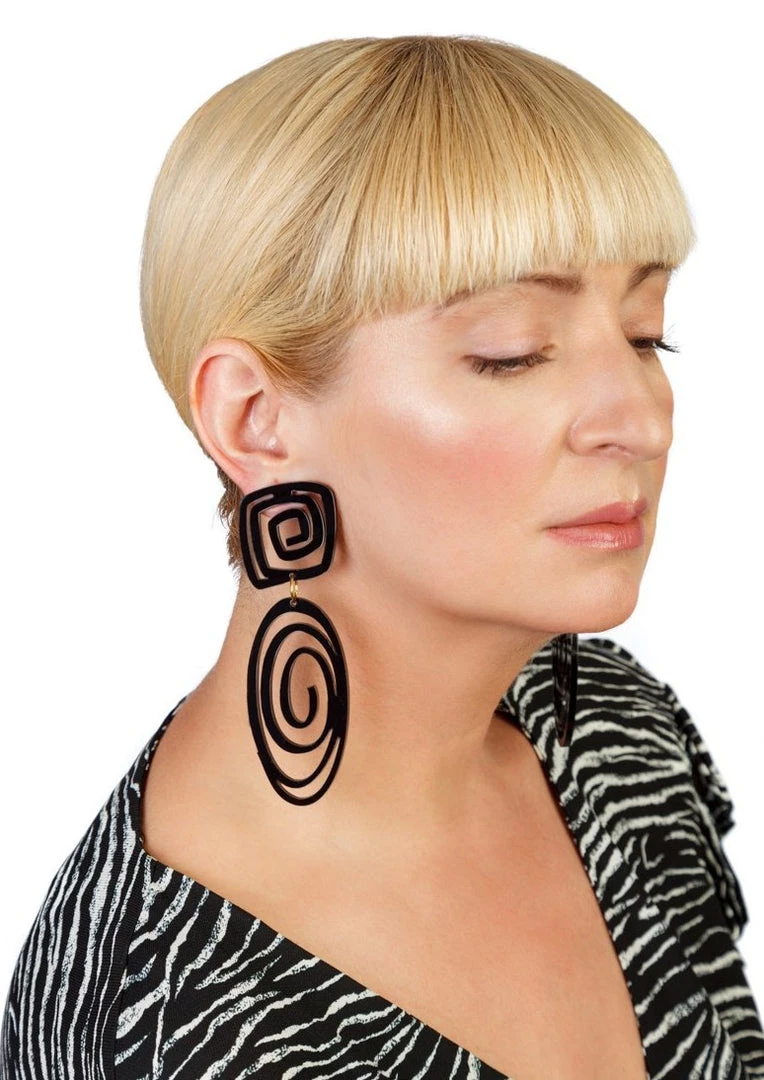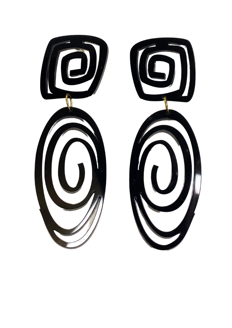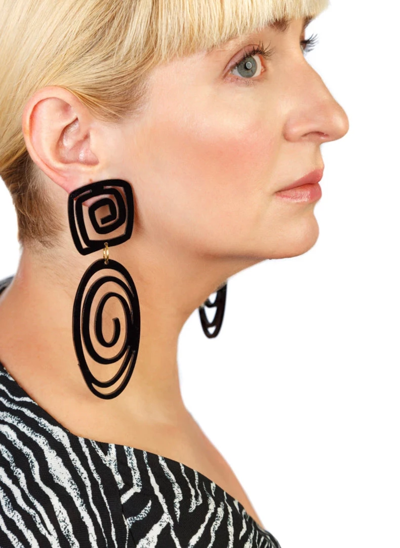 These Drop earrings feature an oval spiral made of mirror plexi-glass creating a beautiful geometric shape that is flattering on anyone.