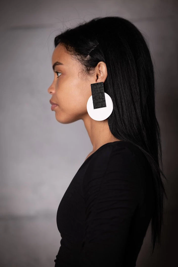 Be the first to review “Ms. Meri Mak Evony Black And White Earring” Cancel reply