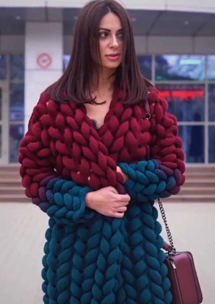 Ms. Meri Mak Jolie Knit Cardigan – Burgundy & Teal