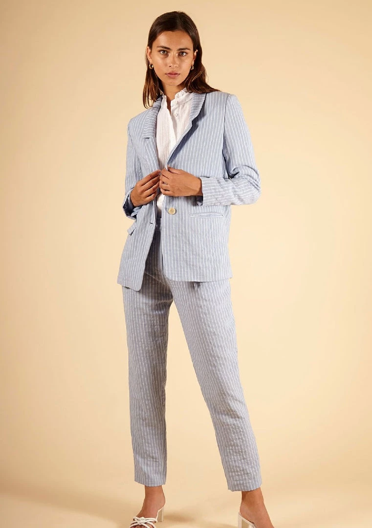 We’re convinced every blazer has secret powers- how else can it instantly transform a casual outfit to a chic one? With a tailored collar, two flap pockets and a blue and white pin-striped print, this jacket satisfies all silhouettes by adding a touch of sophistication with each outfit.