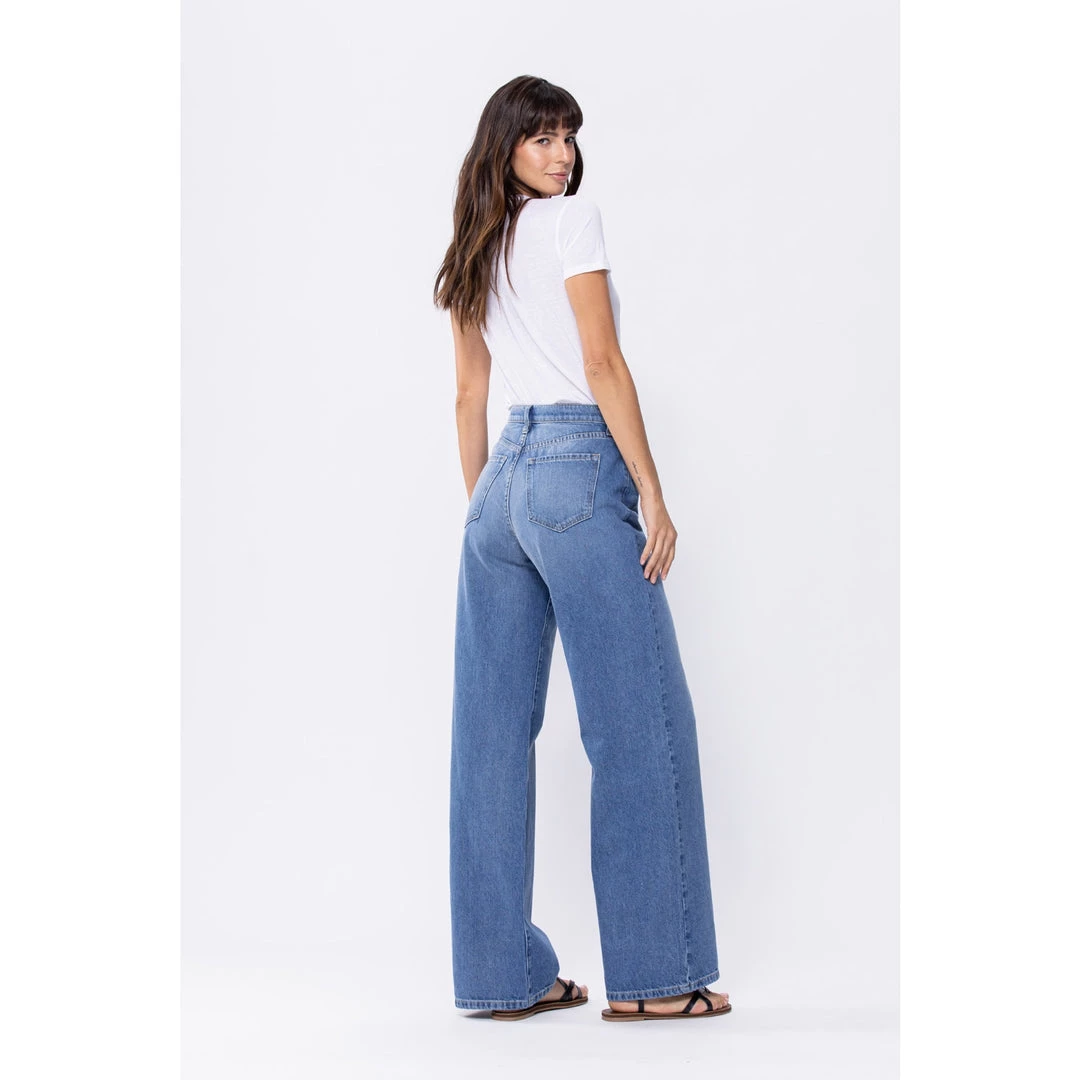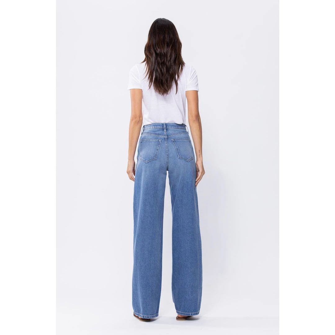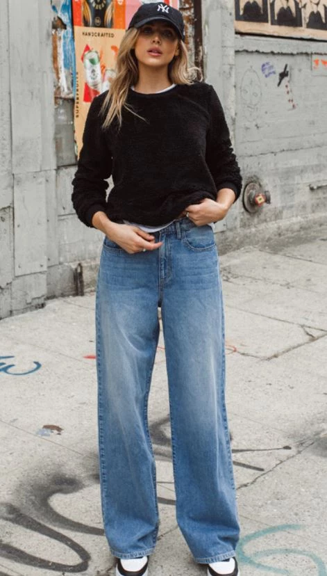 A classic 90’s, stretchy, retro-fit, wide-leg jean with a superhigh, 12″ high rise? Yes please! Better yet, this pair is crafted from 100% cotton.