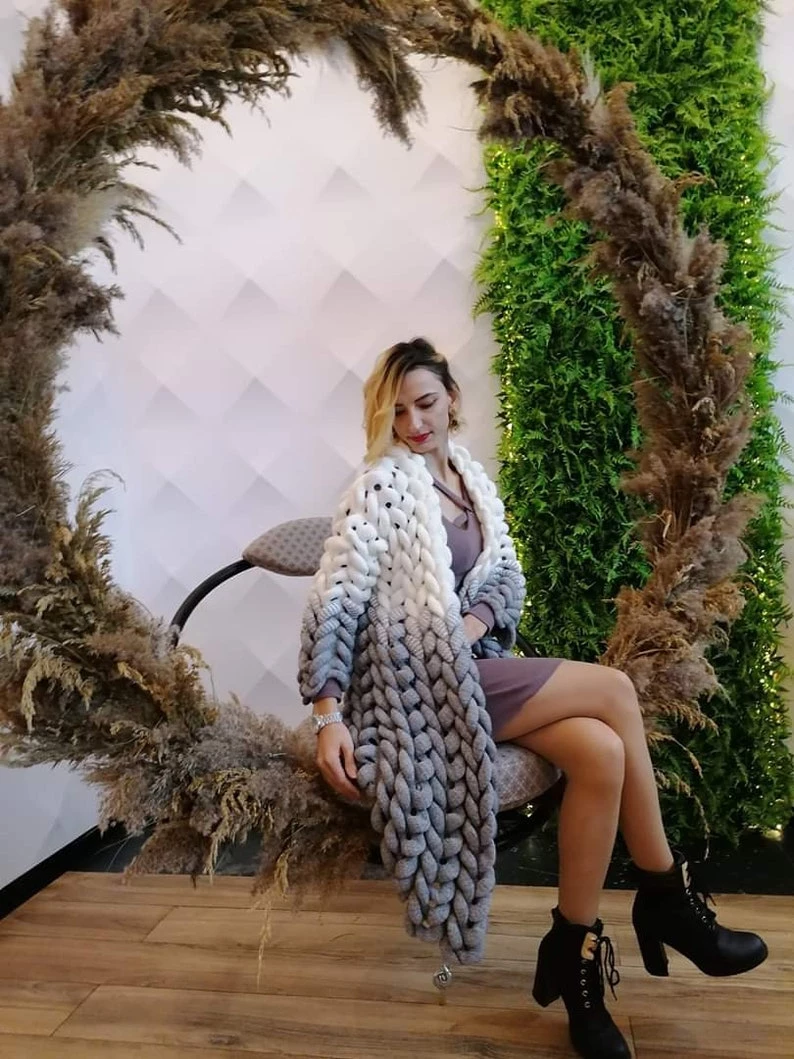 Ms. Meri Mak The Jolie Cardigan Store Jolie Knit Cardigan – White & Gray