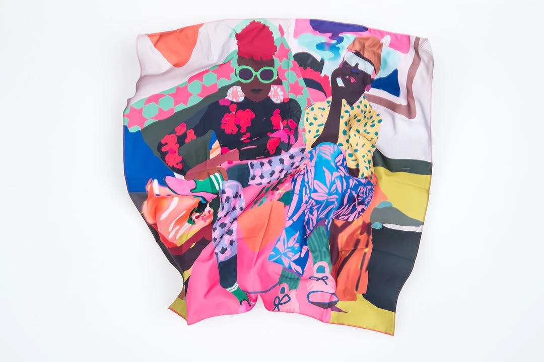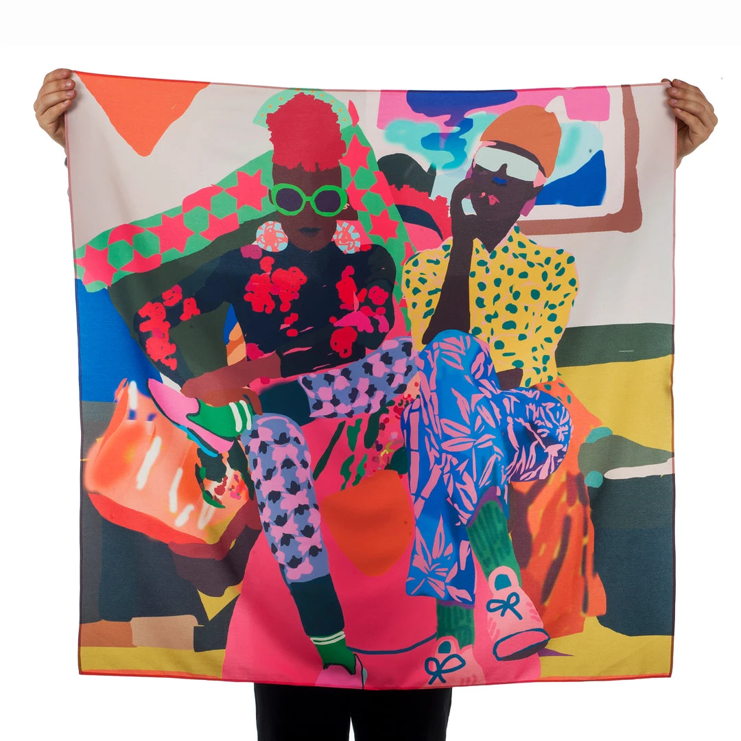 This incredibly versatile portrait scarf is the perfect piece of art to take with you on the go. Wear it as scarf, head wrap, or tie it on your tote — the possibilities are endless. The fabric is beautiful and soft, easy to care for, and infuses any outfit with a little luxury for your every day.