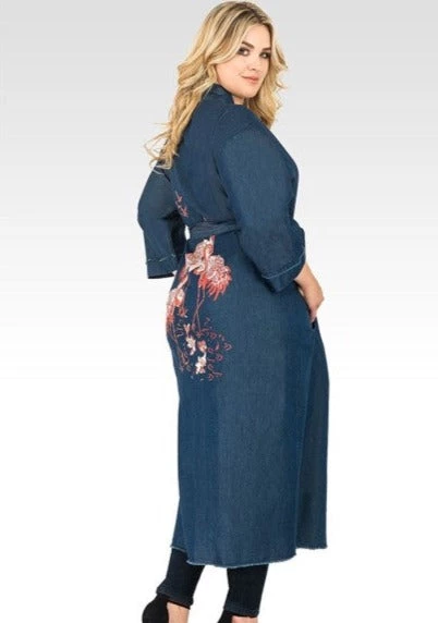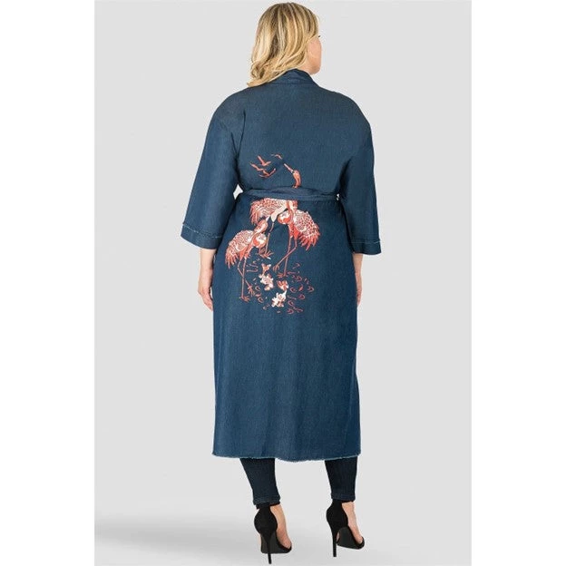 A robe we love at any hour of the day… featuring a gorgeous orange-red and off-white crane image on the back. Oh, and don’t miss the frayed raw hem and tie waist that completes the look for all-day comfort.ย