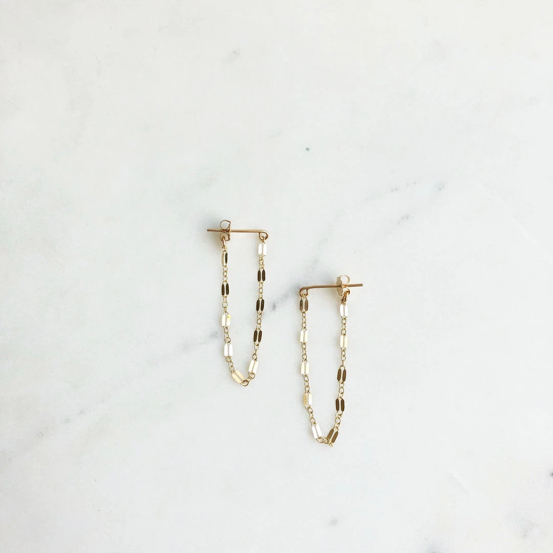 Modern + edgy meets dainty with the Elinore Chain Studs. These versatile earrings are perfect for your first or second piercing. DETAILS Earrings measure approximately 1.75″ long. Each piece of Token Jewelry is handmade in Eau Claire, WI. Please allow for natural variations that may occur.