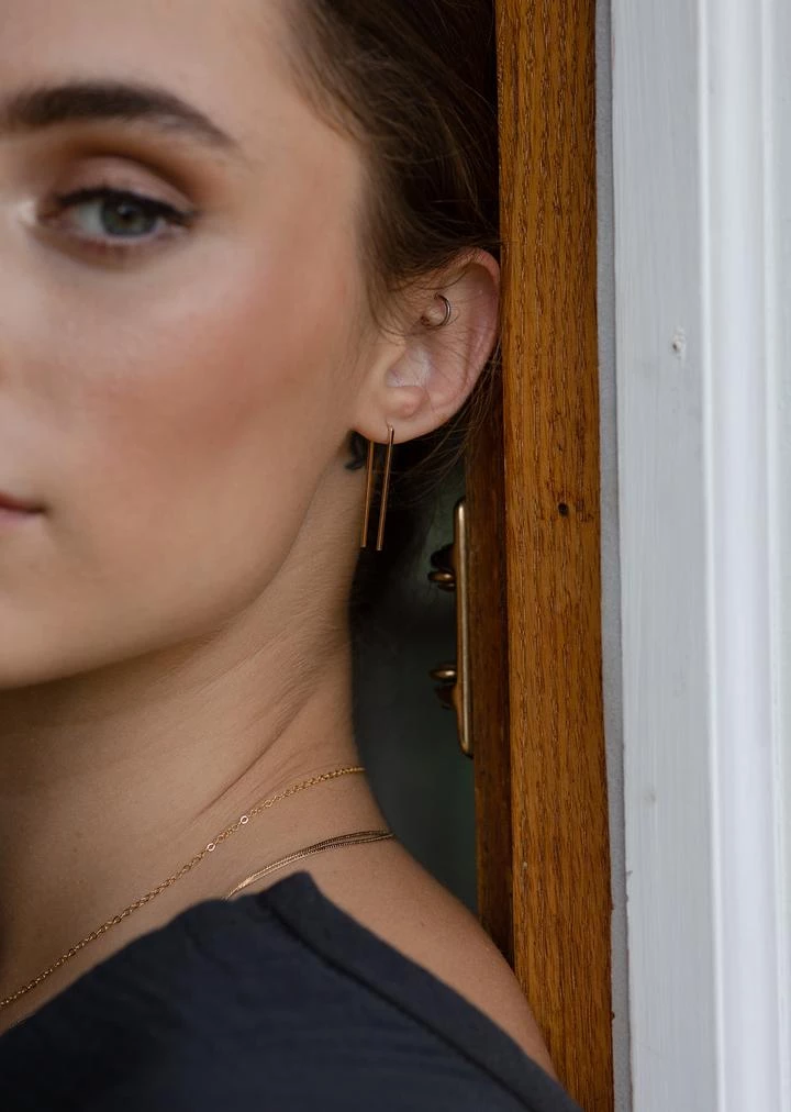 A minimal earring that’s perfect for everyday. Wear them in your second ear holes or let them be the main adornment for your ear lobes! Either way, these earrings will become one of your daily staples.